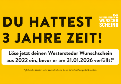 Löse jetzt Deinen Westersteder Wunschschein aus 2022 ein, bevor er am 31.01.2026 verfällt.