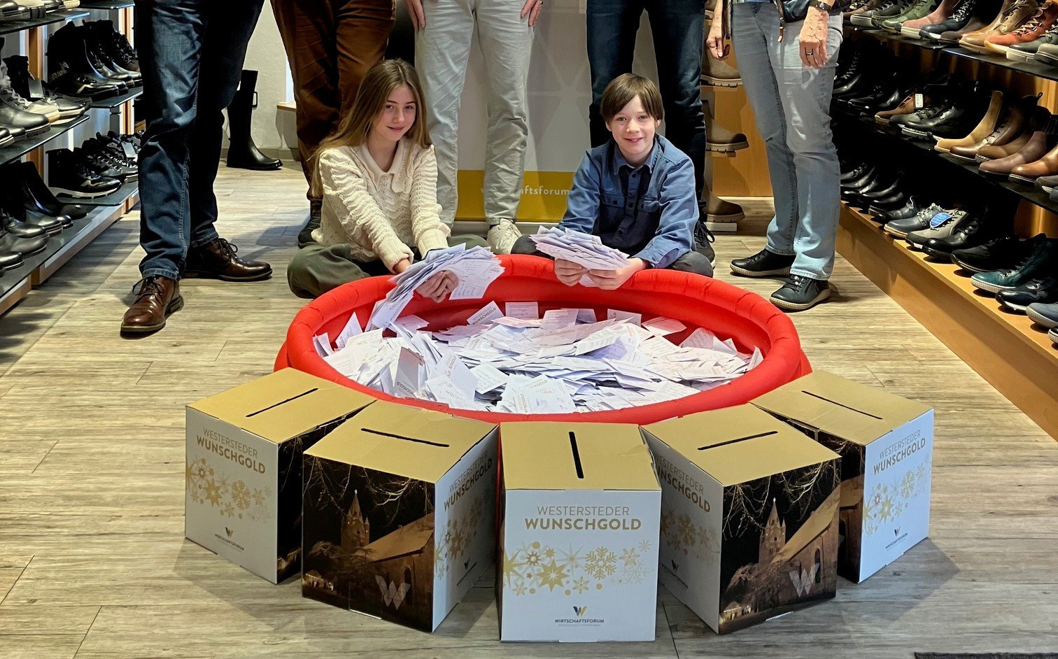 Am 11.01. 2025 wurden im Schuhhaus Janßen die Gewinner gezogen: 40 Gewinner haben Wunschscheine gewonnen, das sogenannte Wunschgold
